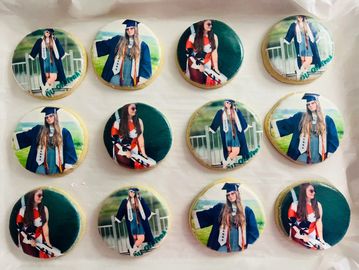 12 count of our standard size custom round sugar cookies. Up to 3 photos of your choice.